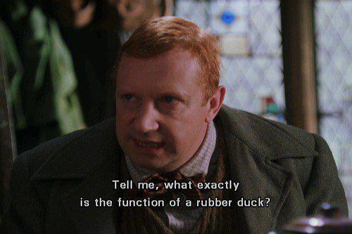 Place rubber duck on desk and inform it you are just going to go over some code with it, if that’s all right.