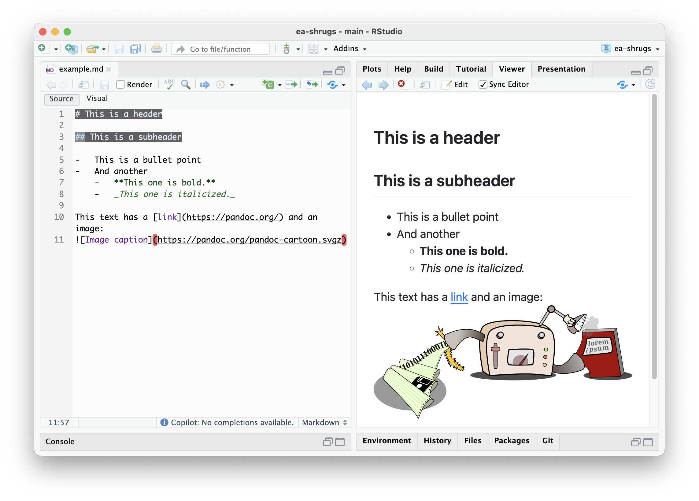 .qmd and the markdown README.mdMarkdown is a lightweight markup language for creating formatted text using a plain-text editor.