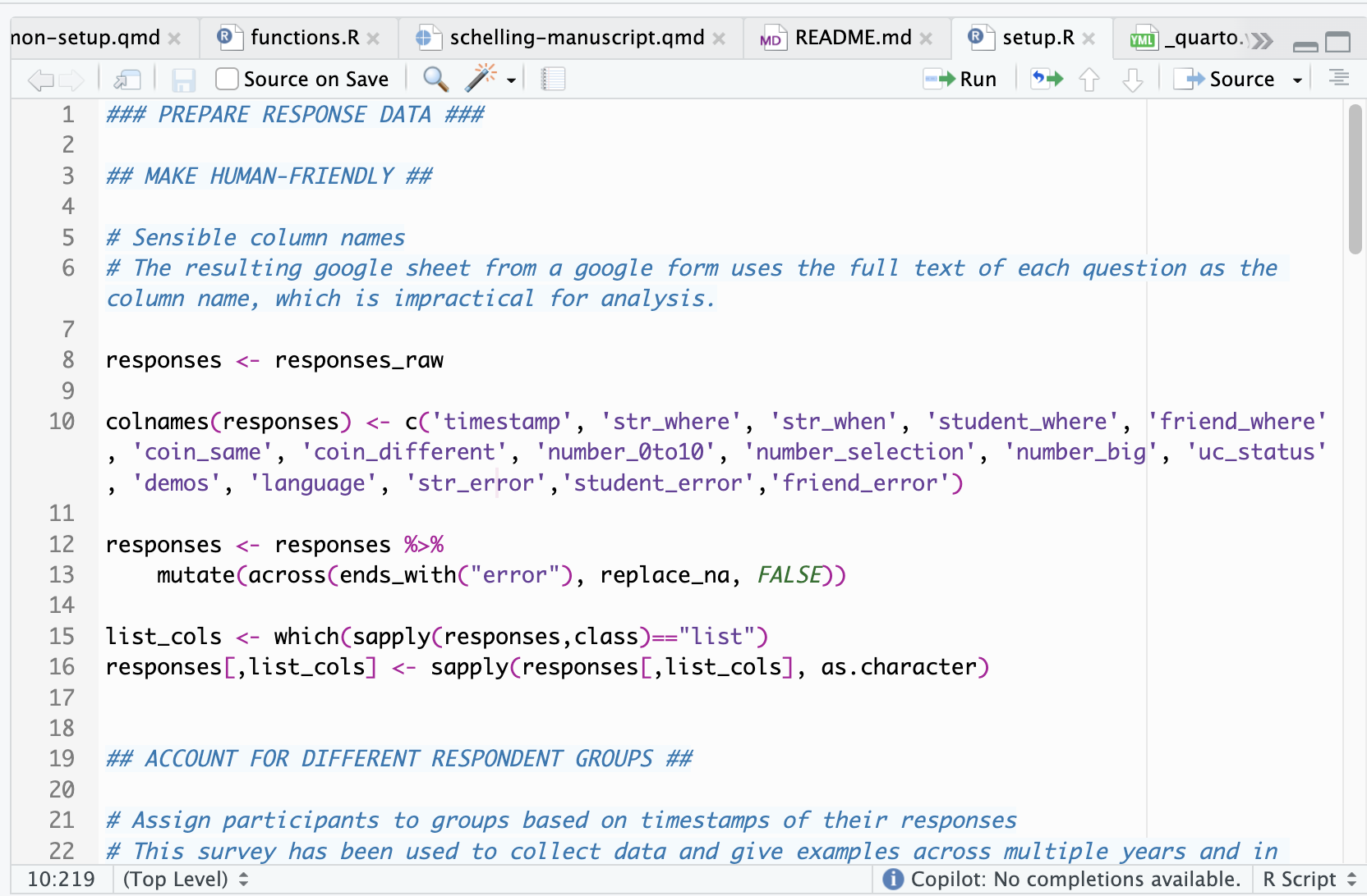 README.md markdown file and setup.R scriptmanuscript.qmd document with: